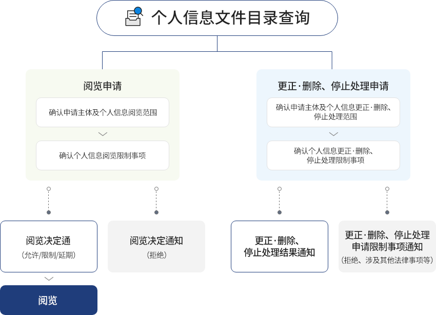 - 信息主体若对个人信息阅览申请等处理结果不满,可提出异议,处理程序如下:
