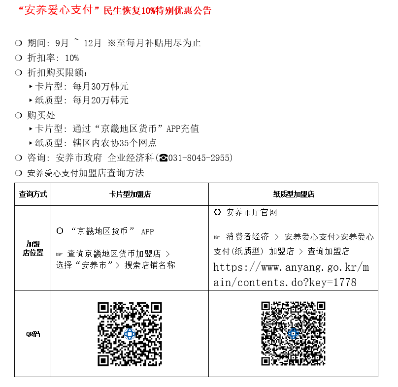最新消息 生活信息 > 最新消息(새소식) 상세보기 - 標題, 內容, 添加 정보 제공 “安养爱心支付”民生恢复10%特别优惠公告 內容 . 사진 확대보기 添加 png 파일 안양사랑페이_중국어2.png 미리보기 (파일크기 : 91.9KB, 다운로드 : 0회) 目录 上一主题 2025 安养本地作家发掘支援展《我们的时光正闪耀》公告 下一主题 2025年安养舞蹈节通知