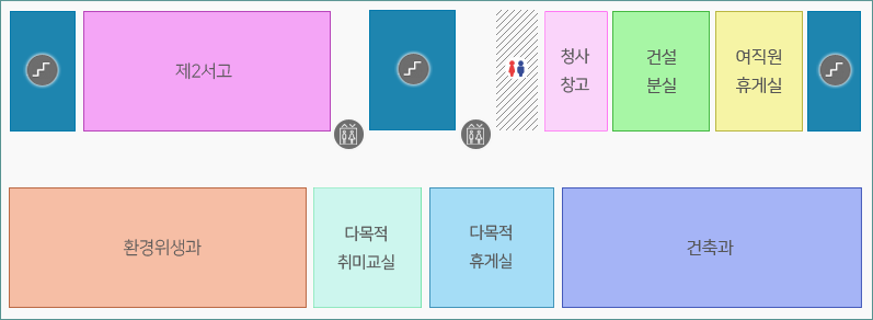 제2서고, 건설분실, 여직원휴게실, 환경위생과, 휴게실, 건축과
