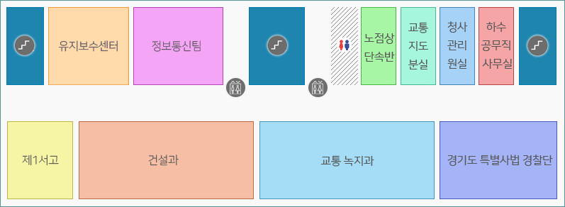 정보통신팀, 노점상단속반, 교통지도분실, 청사관리원실, 하수공무직사무실, 제1서고, 건설과, 교통녹지과, 경기도 특별사법 경찰단