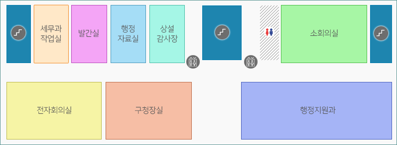 발간실, 통계상황실, 상설감사장, 소회의실, 전자회의실, 구청장실, 행정지원과