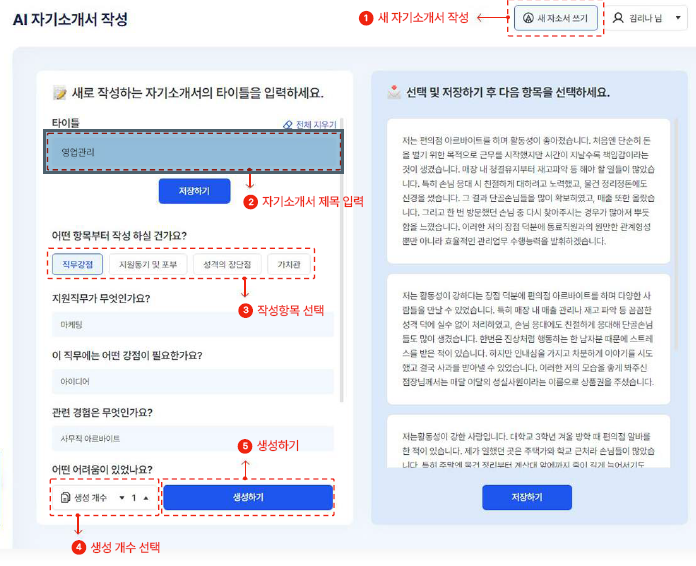 자기소개서 한 줄조차 작성이 어려운 구직자를 위한 “자기주도형 AI 자소서 작성 플랫폼”으로 작성 후 온라인으로 직업상담사 컨설팅과 자소서 기반 면접질문까지 지원받을 수 있습니다.
