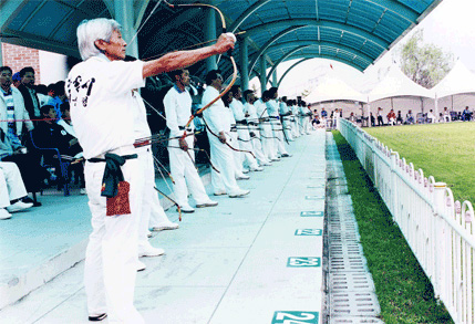 궁도는 우리 고유의 민속경기로서 조상의 얼을 이어받은 민족무형유산으로서 심신 수련의 최적합