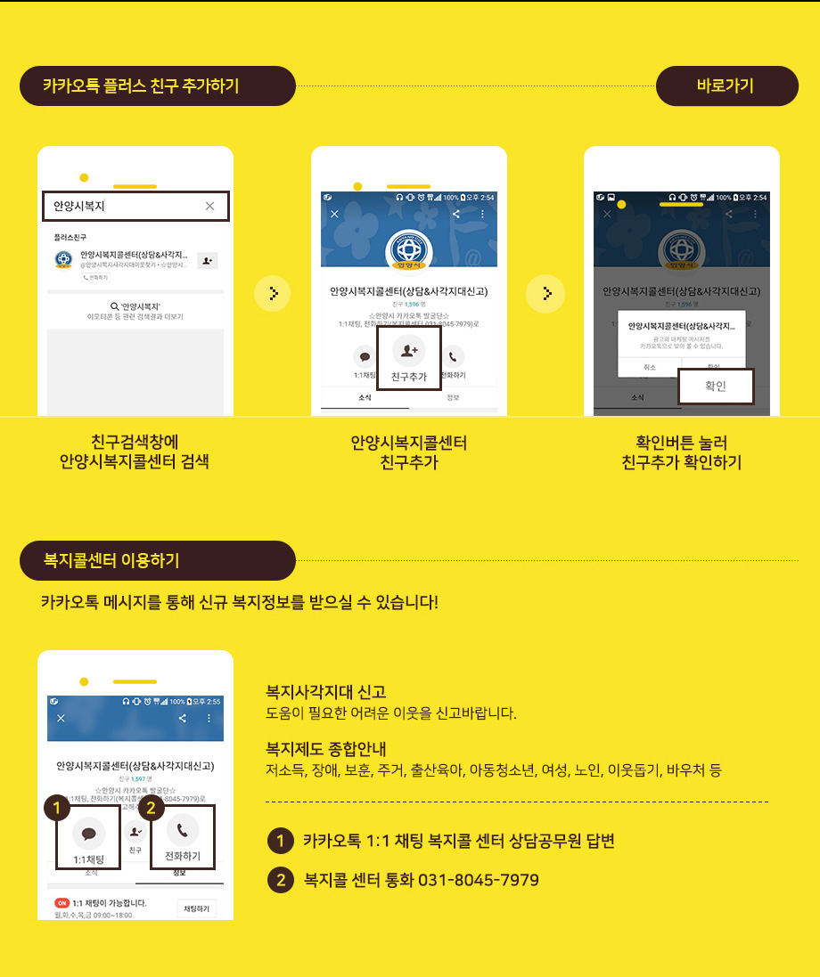 카카오톡으로 편리하게 안양시 복지콜 센터 이용하기