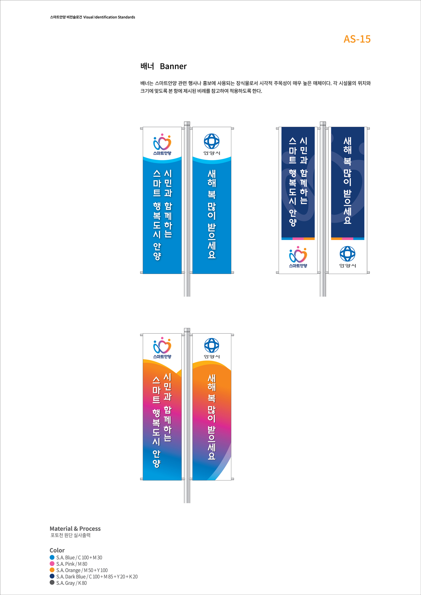 배너는 스마트안양 관련 행사나 홍보에 사용되는 장식물로서 시각적 주목성이 매우 높은 매체이다. 각 시설물의 위치와 크기에 맞도록 본 항에 제시된 비례를 참고하여 적용하도록 한다.