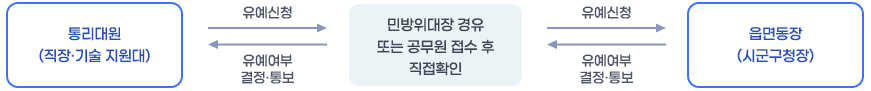 - 유예신청서 제출시 민방위대장 경유없이 담당공무원에게 신청서 제출 (담당공무원이 직접 민방위대장의 확인을 받아 유예 처리)