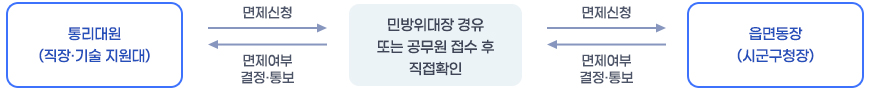 - 면제신청서 제출시 민방위대장 경유 없이 담당공무원에게 신청서 제출