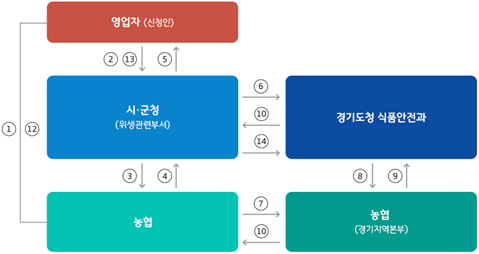 - 위생관리 시설개선자금 및 모범음식점 운영자금의 융자를 받고자 하는 자는 NH농협은행 시·군지부에서 선-대출 가능 여부를 상담하고, 후-융자신청서 등을 작성,관할 시 및 구청에 신청 (서식 1,2 혹은 2-1,3)