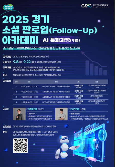 2025년 경기소셜 판로업(Follow-Up) 아카데미 AI 특화과정 참여자 모집 공고 | |