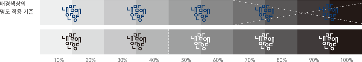 로고마크의 단색 사용은 매체와 바탕색에 따라 표현을 달리할 수 있다. 위의 예는 충분한 명시성을 확보하기 위해 제안된 로고마크 단색사용의 적합한 예시이다.